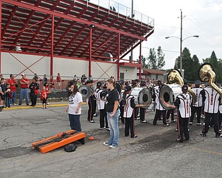 Stadium Drive third-grader Savannah White listened to the Boardman High School marching band as it played a medley of patriotic songs Friday.