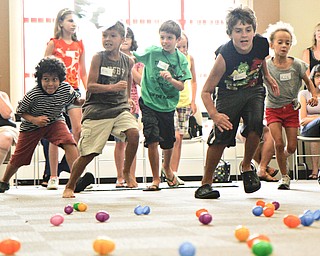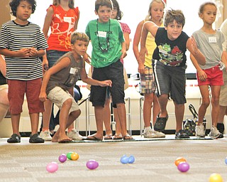 Anabella Soanes-Carter, 9, of Boardman, Ohio collects eggs during the 'Live Pacman' game at the Boardman Library on August 9, 2012.