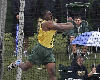 Springfield's Stephen Lyons throws the discus during the boys discus Friday afternoon in Columbus.