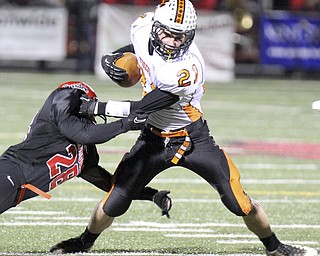 NICK MAYS l THE VINDICATOR (3) Ryan Mosora of Brookfield tries to break away from (36) Anthony Monda of Edgewood in the first quarter of thier game Friday night in Girard. ashtabula vs brookfield 11022012 …