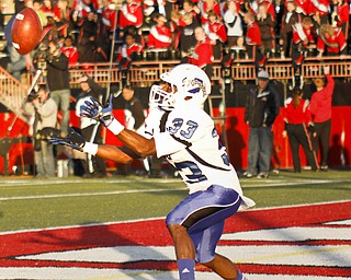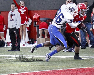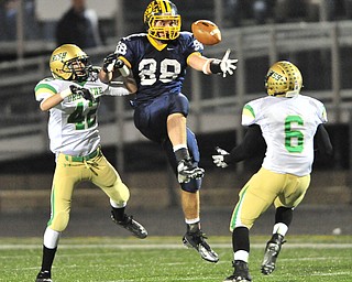 ROBERT K. YOSAY | THE VINDICATOR --..#2 Darien Townsend tries to break up a pass for 40+ yards to #36 Gary Strain during second quarter action - .YCS vs Mogadore at Ravenna...(AP Photo/The Vindicator, Robert …
