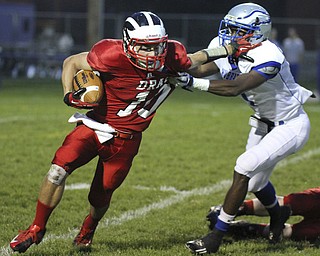 NICK MAYS l THE VINDICATOR (4) De'Veon Smith tales off down field for a long gain past (4) Dave Morocco of Poland during thier game Friday night in Poland. howland vs poland 10052012 Poland, Ohio