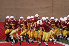 Western Reserve running back #3 Tim Cooper runs the ball down by the goal line during the second quarter.
