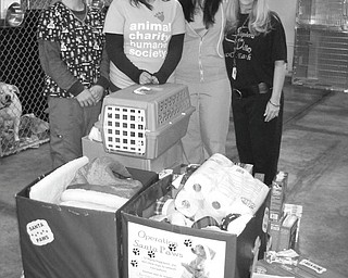 Nikki Harley, left, Shalyse Bolash, Talia Musolino, Paula Blakeman, Shepherd of the Valley Poland activity/volunteer director and Operation Santa Paws organizer, are shown with donations received for Animal Charity from SOV’s Operation Santa Paws.