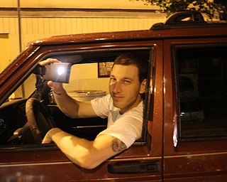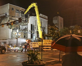 William d LEwis The Vindicator Nicholas Serra watchesas demo of the historic Paramount Theater gets underway Monday night. A parking lot will be built on hte site at Hazel and W,Federal in dowtown Y-town.