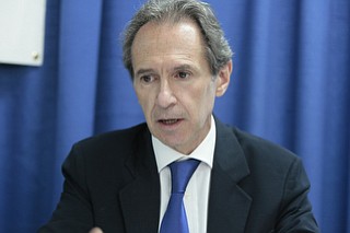 Miami’s Chris Bosh (1) grimaces as he tries to find some space under the basket during the first half of Tuesday’s NBA Finals game in San Antonio, Texas.