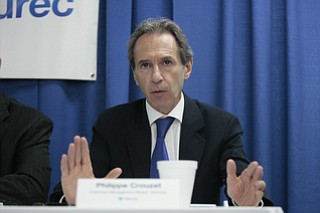 Job seekers inquire for positions at the 12th annual Mission career fair in the skid-row area of Los Angeles. The Labor Department reported Tuesday that the number of people who quit their jobs rose in …
