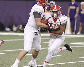 MADELYN P. HASTINGS | THE VINDICATOR..Fitch's Antwan Harris (18) runs with the ball while Marysville's Kenny Kinder (27) attempts to stop him during their game on November 9, 2013.... - -30-..