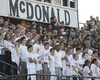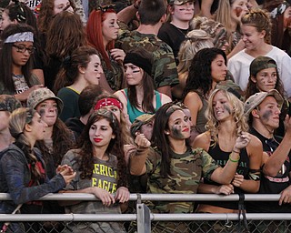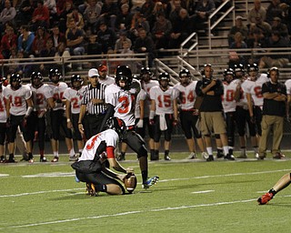 William d Lewis the Vindicator Western Reserve's (11) reacts after scoring during 1rst half action 9-27-13 at McDonald.With him is (5).