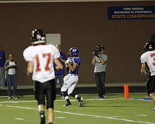 William d Lewis the Vindicator Western Reserve's (11) pulls in a TD pass during 1rst half action 9-27-13 at McDonald.Defending for McDonald is (25