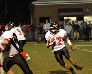 William d Lewis the Vindicator McDona;d's (9) eludes Western Reserve's(20) during 1rst haslf action 9-27-13 in Mcdonald.