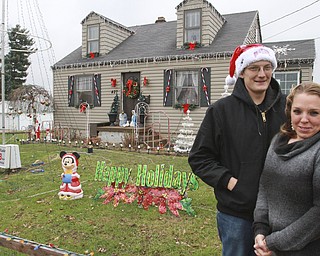 William D. Lewis The Vindicator Pedestrians walk as holiday lights adorn downtown Youngstown.