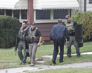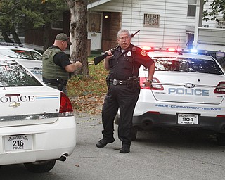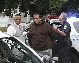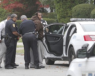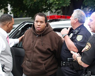 Jamon West, 14, and Sade Poindexter, 17, both of Youngstown, listen intently to advice from police about how to respond when picked up to avoid a confrontation.
