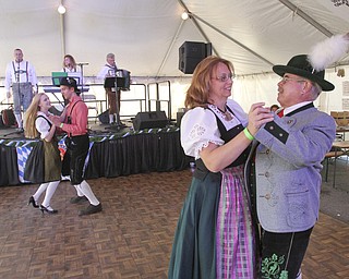 William D Lewis the vindicator Auggie Heschmeyer and Heather Foust, both of Youngstown dance a polka to the sounds of Eintracht, a Mahoning Valley based band that plays German music during Oktoberfest Youngstown at Kravitz …