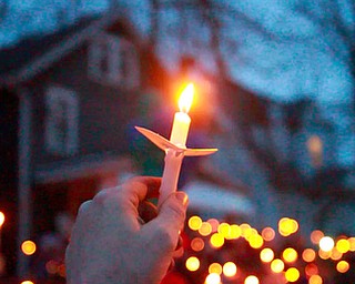 A woman takes a photo during a vigil for 3 people killed in a Youngstown house fire.