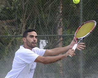 Katie Rickman | The Vindicator. Loui Mussa 10 from Beit Safafa hits a tennis ball during the Israeli Tennis Center exhibition at Youngstown Country Club August 24, 2015.