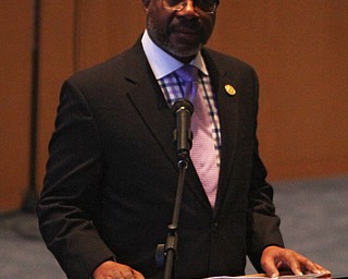 Rev. Kenneth Simon gives a welcome to the congregation during the Emancipation Proclamation and Installment service at the New Bethel Baptist Church in Youngstown on Thursday morning. Dustin Livesay | The Vindicator 1/1/15 Youngstown, Ohio.