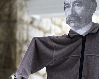 William D. Lewis the Vindicator Bob Davis an employee at the Ford Nature Center in Mill Creek Park puts bird seed in a feeder 1-16-15. The feeder is on a cutout of park founder Volney …