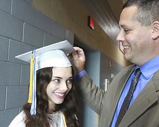 William D. Lewis The vindicator Isaiah Randall gets some help with his graduation cap from fello Chaney grad Ashley Delgado before start of Chaney commencement Friday 6-5-15.06052015 wdl chaney a..