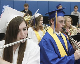 William D. Lewis The Vindicator Jackson Milton grad Thomas Carnes plays one last number with hte band during Friday commencement at JM HS. He also was one of 8 valedictorians.