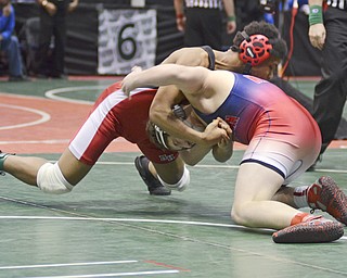 Katie Rickman | The Vindicator.Beaver Local's Beau Smith wrestles Gary Wokojance of Barberton at the Covelli Centre on March 21, 2015.