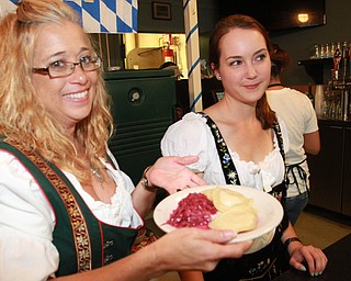 William D Lewis the Vindicator Auggie Heschmeyer and his sister D'Ella Heschmeyer of Liberty dance to German music at Kravitz Deli in Liberty Friday as part of Oktoberfest event.