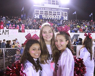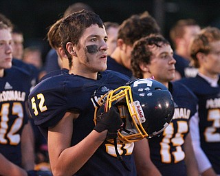 William D Lewis the Vindicator WR's Wyatt Larimer(13) is knocked out of bounds by McDonald's Alex Cintron(31) during 1rst half action in McDonald 10-9-15.