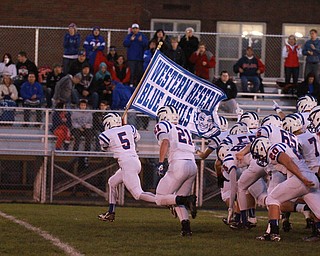 William D Lewis the Vindicator WR's McDonald's Jake Rekard(9) runs past Western Reserve's Brian Benyo(20) during 1rst half action in McDonald 10-9-15.