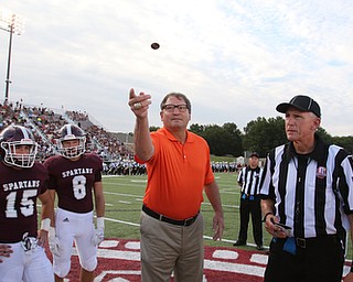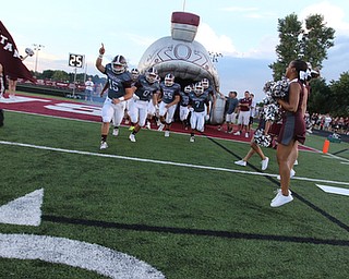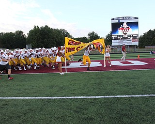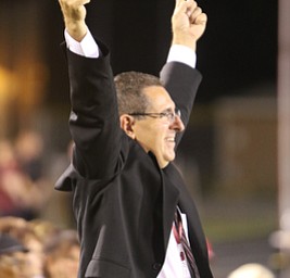 . ROBERT K. YOSAY | THE VINDICATOR..David McDowell Celebrates the FIRST TD scred in Boardmans Stadium after a 12 yard sprint in the first quarter..Boardman Spartan New Stadium as Cardinal Mooney ..-30-