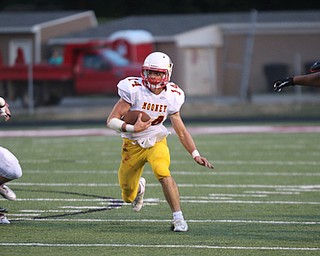 . ROBERT K. YOSAY | THE VINDICATOR..Mooneys #9 David McDowell sprints past Boardmans #46 Mike Melewski can only watch as McDowell Sprints 12 yards for Boardmans First TD in the first quarter..Boardman Spartan New Stadium …
