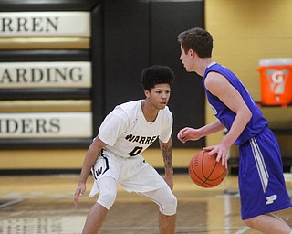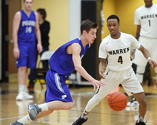ROBERT K. YOSAY | THE VINDICATOR..Hardings Shakem Johnson pushes by Polands Matt Baker for two - during first quarter action at Harding..- --30-...