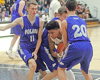 ROBERT K. YOSAY | THE VINDICATOR..Goes for two as Derek Culver moves left and to the basket in front of Poland Defender #14 Jacob Burns- during first quarter action at Harding..- --30-...