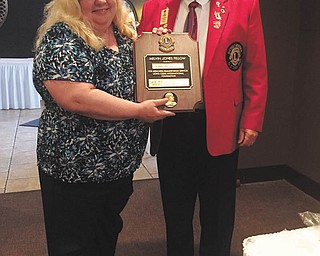 SPECIAL TO THE VINDICATOR Above left, a new president takes them helm of the Youngstown Lions Club. Kyle Miasek, right, deputy director of finance of Youngstown, receives the gavel from outgoing president George Kolesar. Below …