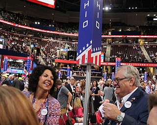 Lt. Gov. Mary Taylor and other members of the Ohio delegation to the Republican National Convention dance during the start of WednesdayÕs evening session..