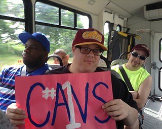 CLEVELAND, OHIO - JUNE 22, 2016: Cleveland fans display a banner from atop a parking deck Wednesday morning before the Cavaliers championship parade. DAVID DERMER | THE VINDICATOR