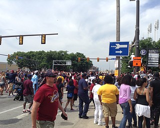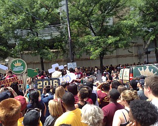 CLEVELAND, OHIO - JUNE 22, 2016: Parade floats work to progress down East 9th Street through the mass amounts of people during the Cavaliers Championship Parade Wednesday afternoon. DAVID DERMER | THE VINDICATOR