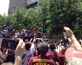 CLEVELAND, OHIO - JUNE 22, 2016: LeBron James vehicle drives down East 9th Street in the shadow of the Key Bank building during the Cavaliers Championship Parade Wednesday afternoon. DAVID DERMER | THE VINDICATOR