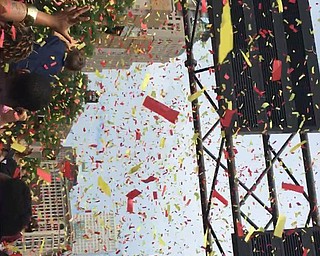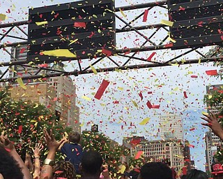 CLEVELAND, OHIO - JUNE 22, 2016: Cleveland Cavaliers fans celebrate while the confetti falls onto them during the Cavaliers Championship Parade Wednesday afternoon. DAVID DERMER | THE VINDICATOR