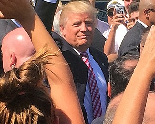 . ROBERT K. YOSAY | THE VINDICATOR..The Donald is surrounded by security as he makes his way down the midway..crowds 7-9000 people waited to see THE DONALD as he made his way to the Republican …