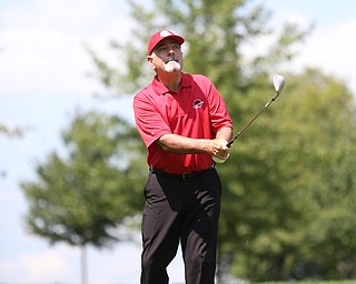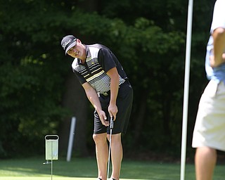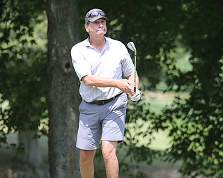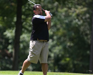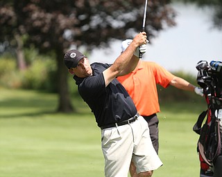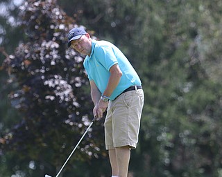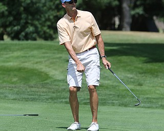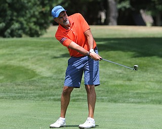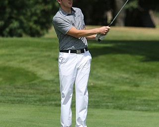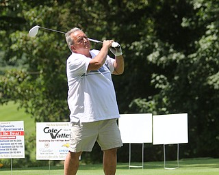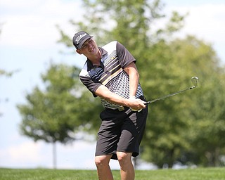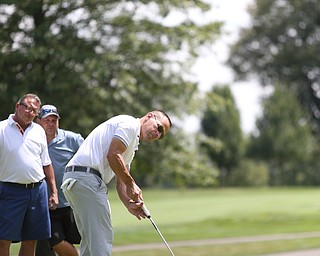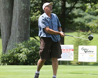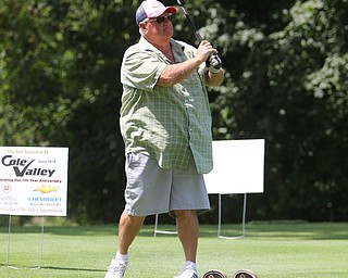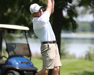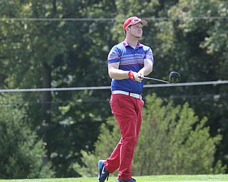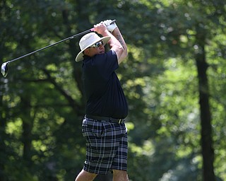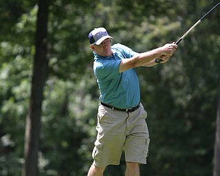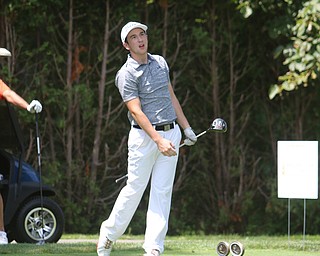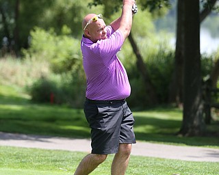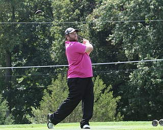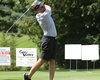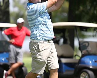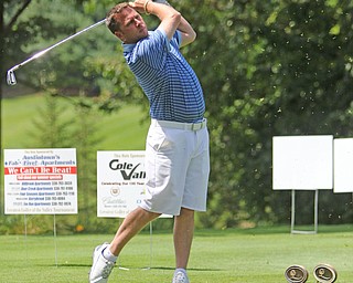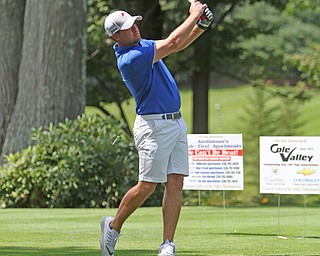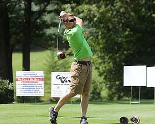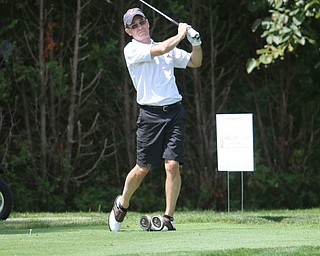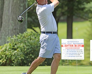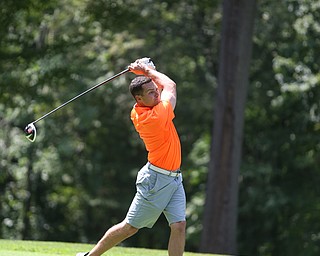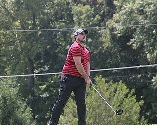 POLAND, OHIO - AUGUST 14, 2017: Zach Jacobson tees off not he 16th hole Monday afternoon during the 2017 Greatest Golfer of the Valley scramble at the Lake Club. DAVID DERMER | THE VINDICATOR