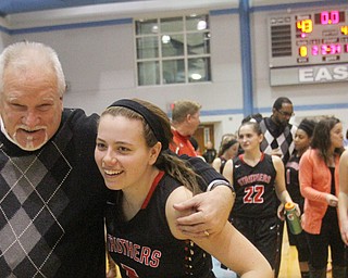 William D. Lewis The Vindicator Struthers girls basketball coach John Grandy gets a hug from Karli Shives(5) after his team beat East for Grandy's 200th win.