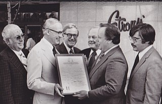 Jerold S. Meyer (second from right), general manager of Strouss--Hirshberg …