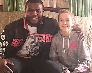 William D. Lewis The Vindicator Former OSU standout Cardale Jones poses shot with Olivia Booth 12, of McDonald. Her sister,Anna Booth(8th grade) ,was recently was diagnosed with cancer. Jones visited Mondays McDonald at Mineral Ridge …