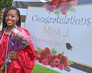 ROBERT K. YOSAY | THE VINDICATOR..The last class of VPA/Stem Graduated at Chaney High School Friday afternoon ..Ò..Armoni Moore proudly displays her diploma...after the cereemony