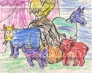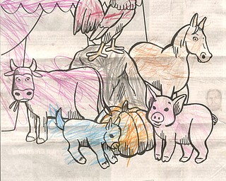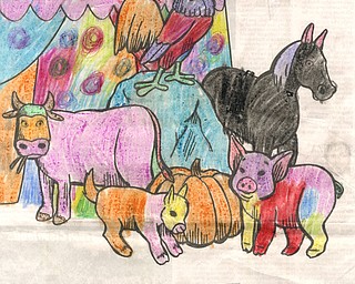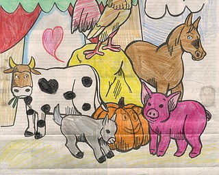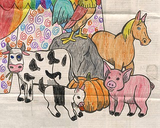 Neighbors | Jessica Harker.Jessica and Nora Wilson sat on a blanket and colored while listening to the YACCB on July 26 in Boardman Park.