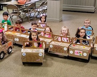Hubbard Music Store in the Eastwood Mall is unveiling ukuleles that were hand painted by Lakeview, Hubbard and Liberty students Alissa Rodgers, from left, Hannah Best, Zion Jones and Taylor Begeot.