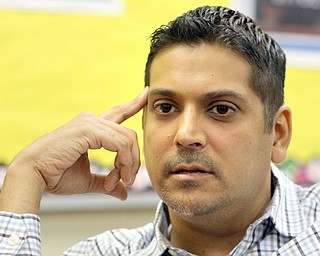Warren G. Harding's Chris Hughes shoots over Struthers' Ryan Leonard as Boardman's Holden Lipke looks on during the Al Beach All-Star Classic on Tuesday at Canfield High School...?