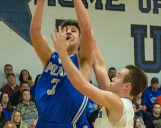 William D. Lewis The Vindicator Canfield's Aydin Hanouser(1) tries for 2 as Harding's Aston Bates(1) and William McCready(5)defend during 1-8-19 action at Canfield.