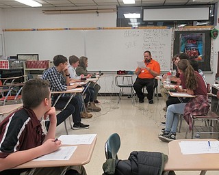 Neighbors l Jessica Harker.Poland teacher Scott Suchora read questions to Boardman and Poland Quiz Bowl team members on Jan. 16.