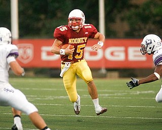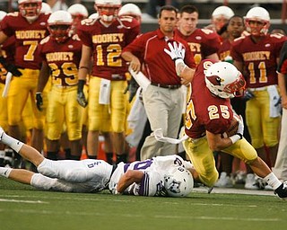 The Vindicator/Robert K. Yosay -----Alex Zordich breaks thru #55 DeSales David Weatherholt as he picks up a first and 10 during first half action at Stambaugh Stadium - 942009
